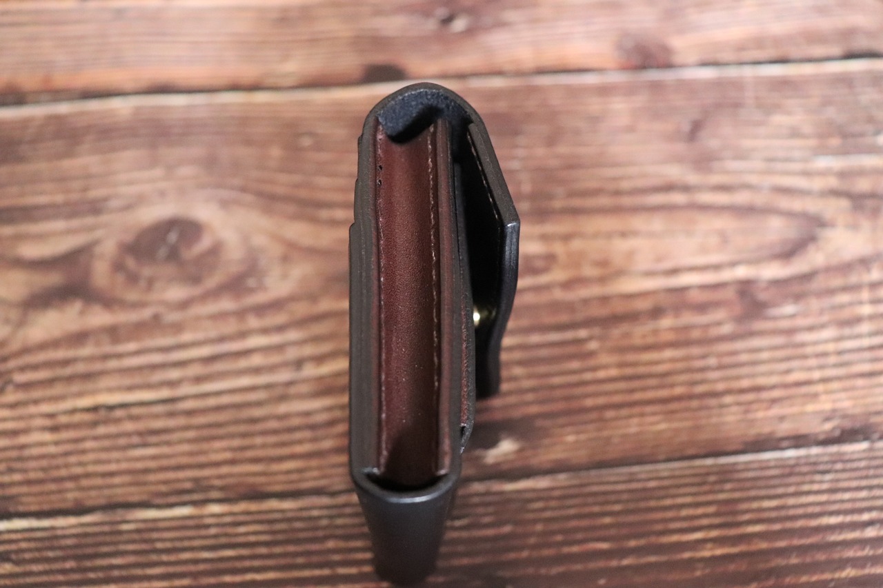 この札入れにはカードも収納可能!かなりコンパクトで収まりも良く、最低限の容量はまかなえる財布になっています。