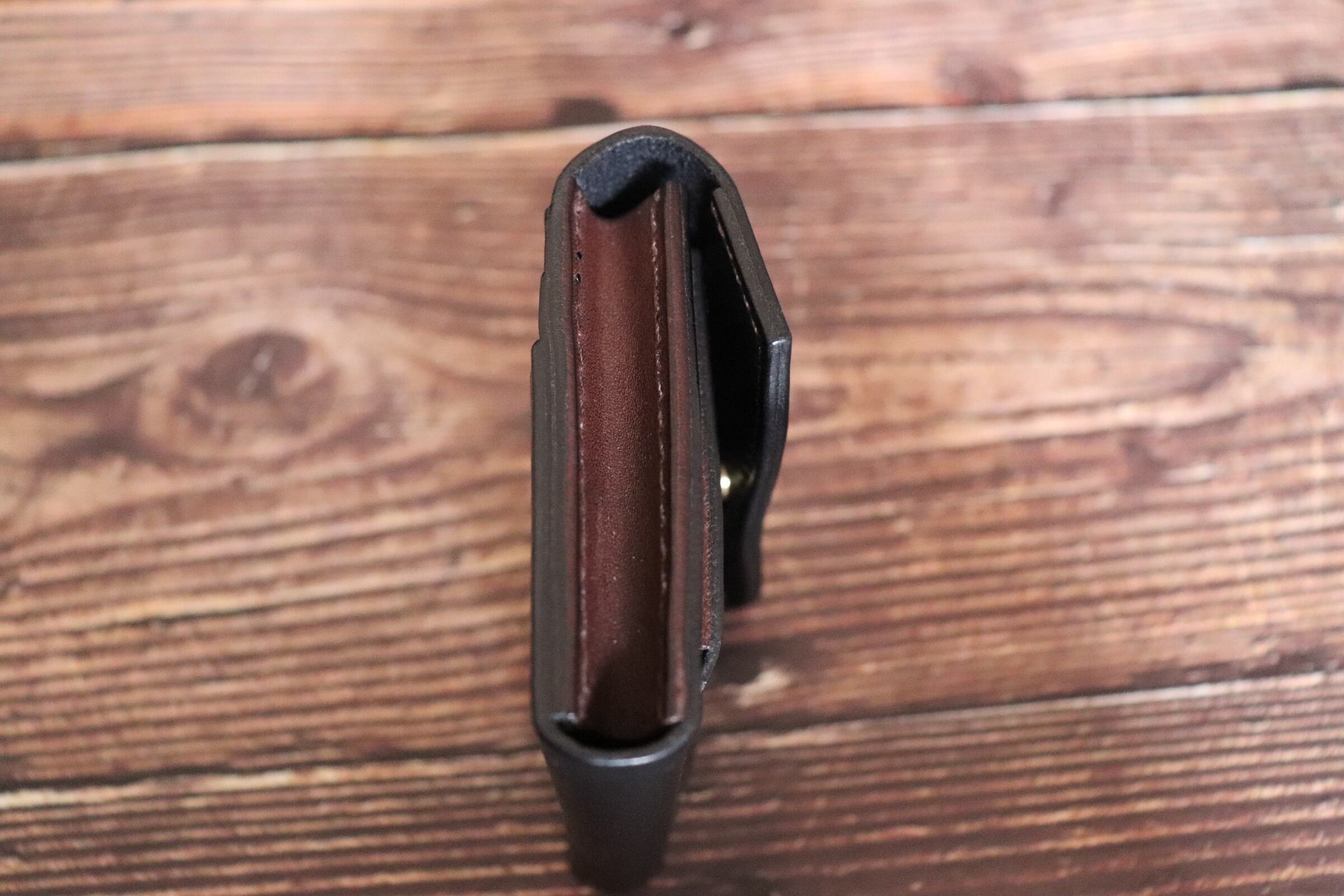 表面にはコインケース、裏面には3枚収納可能なカードポケットがあり、中にはお札を二つ折りにして入れられる札入れがあります。