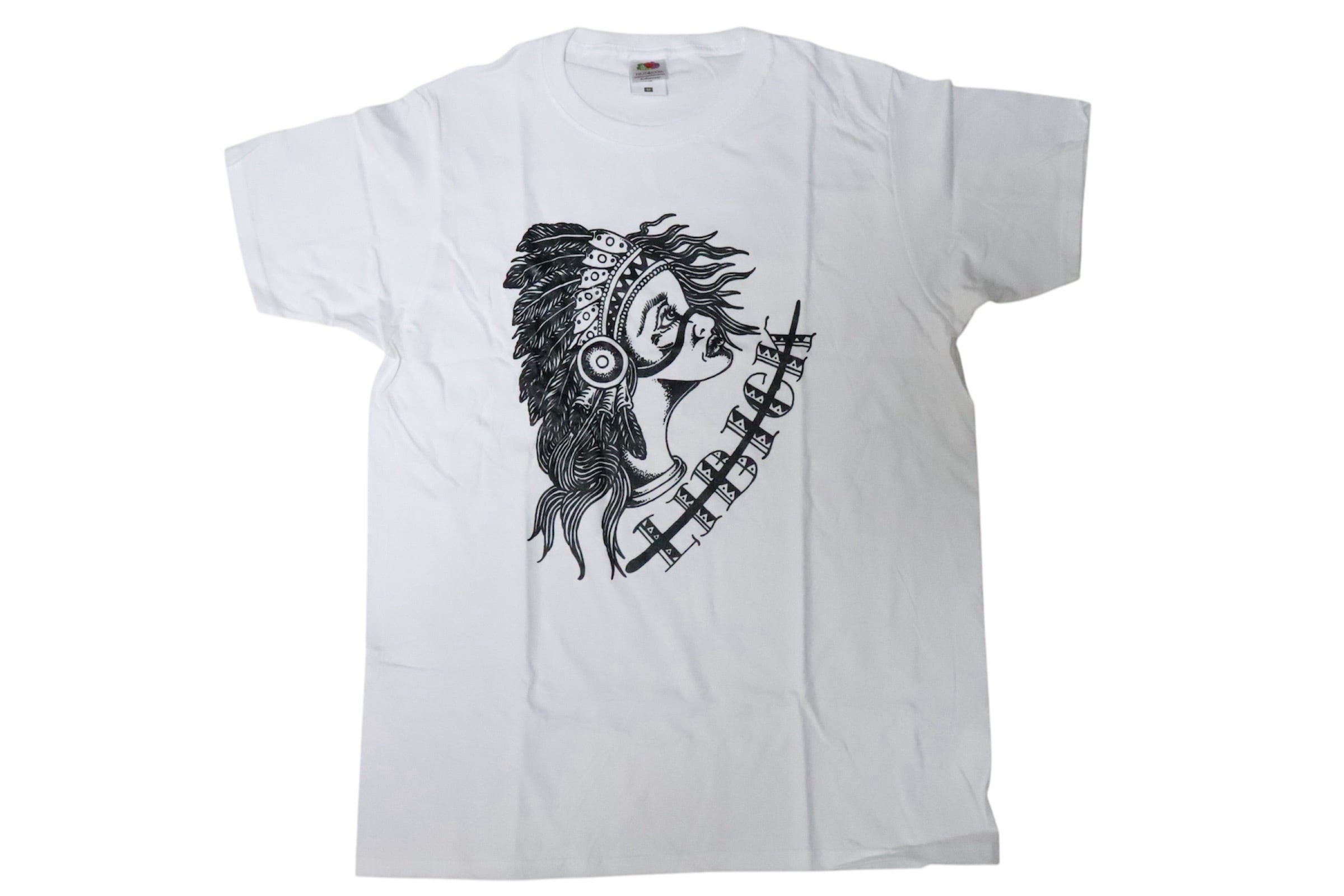 白地に黒で描かれたインディアンは、独特の迫力があり、まるでアメリカンスピリットを纏ったかのよう。